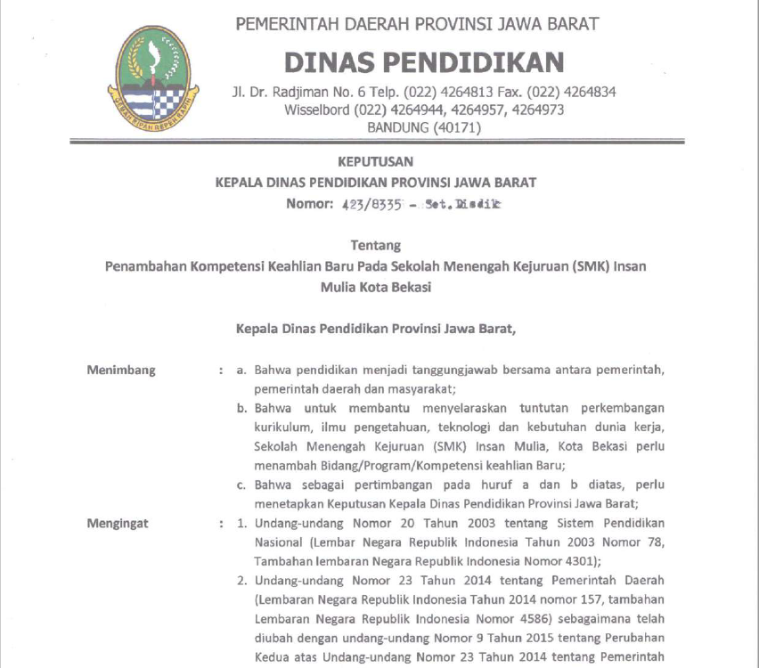 SMK IT Insan Mulia sudah berizin dan beroperasi sejak 2011